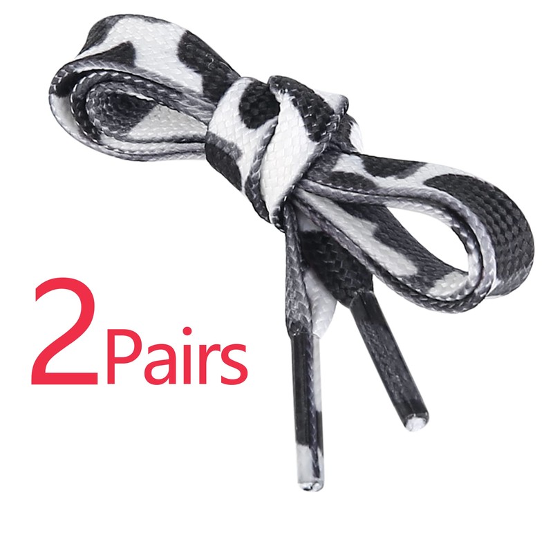 Two pairs of 2/5" wide flat shoelaces, graduated laces for sneakers, athletic shoes, running shoes, boots.