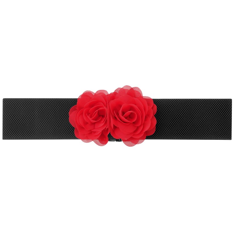Elerevyo Women's Elastic Wide Waist Belt, Large Double-Flower Stretchy Corset Sweet Elegant Casual for Dress 68x6cm/26.8x2.4 inches(LxW) Red