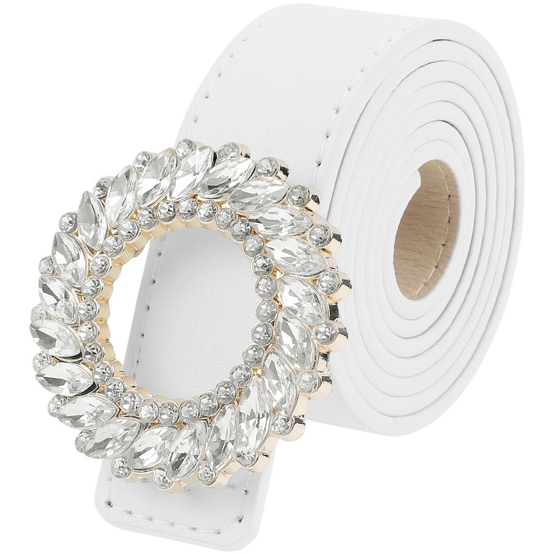 Elerevyo Women's Faux Leather Belt Fashion Ladies Belt with Rhinestone Buckle for Jeans Pants 103x2.8cm/40.6x1.1 White