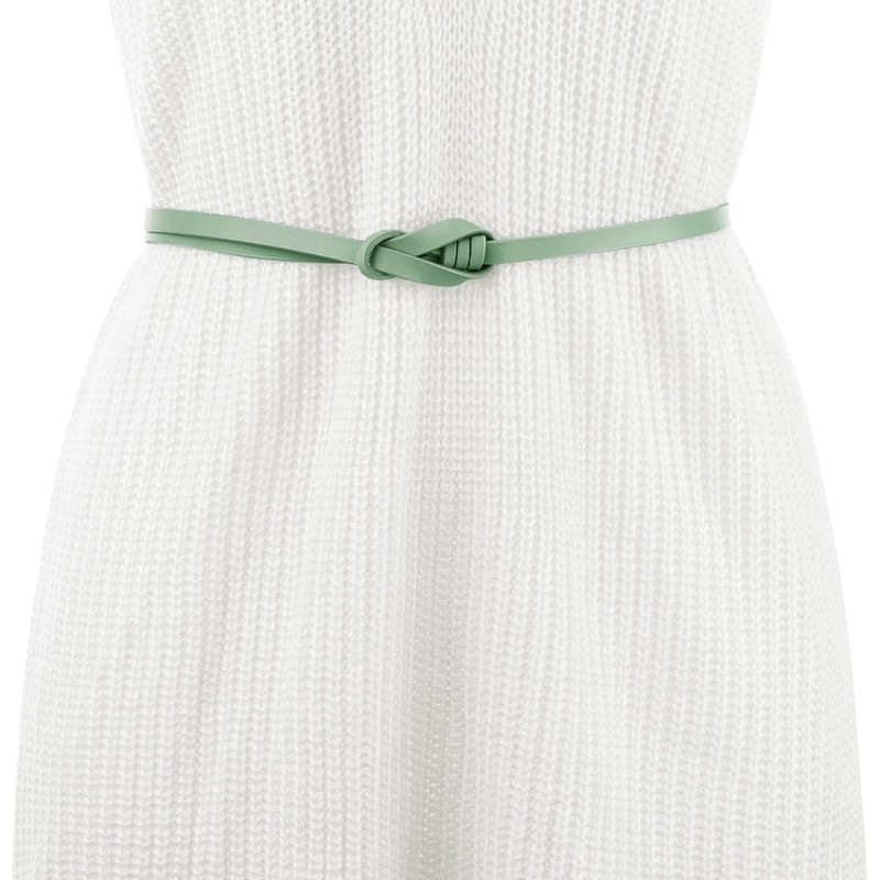 Elerevyo Women's Leather Skinny Belt for Dress Adjustable Knotted Thin Waist Belts for Ladies Length 105.0cm/41.3" Light Green