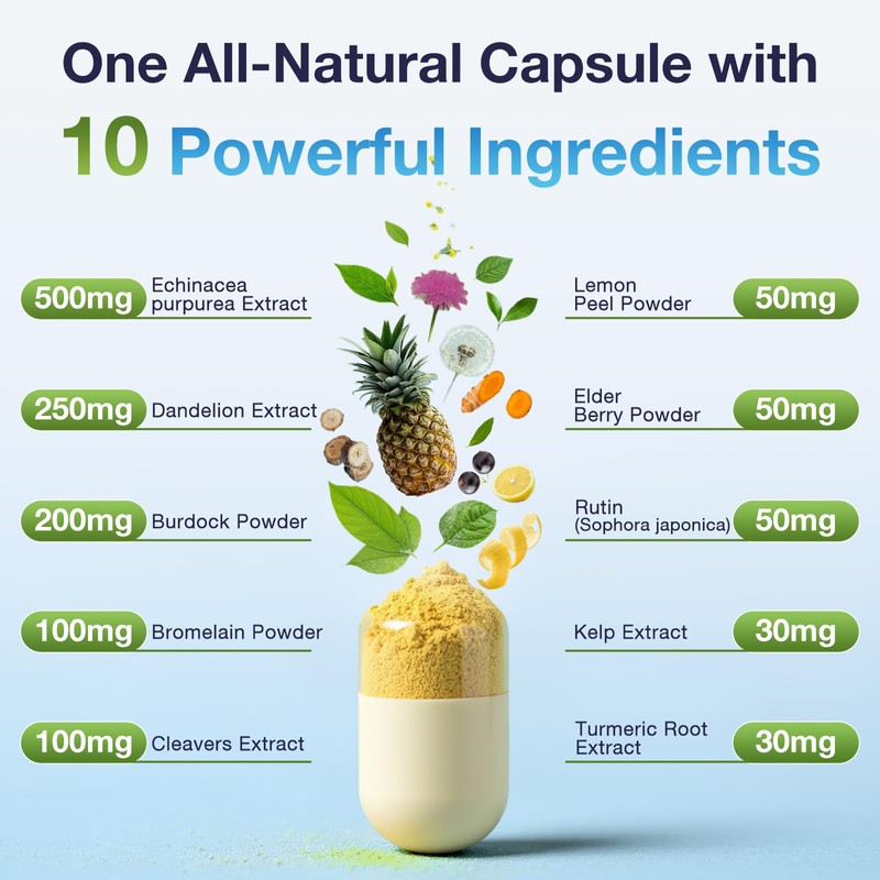 - Immune-Boosting Ingredients:This advanced formula features powerful components like cleavers extract, bromelain, lemon peel Powder, turmeric root extract, and kelp Extract , carefully selected formula not only promotes lymphatic health but also strengthens your immune system for comprehensive wellness.