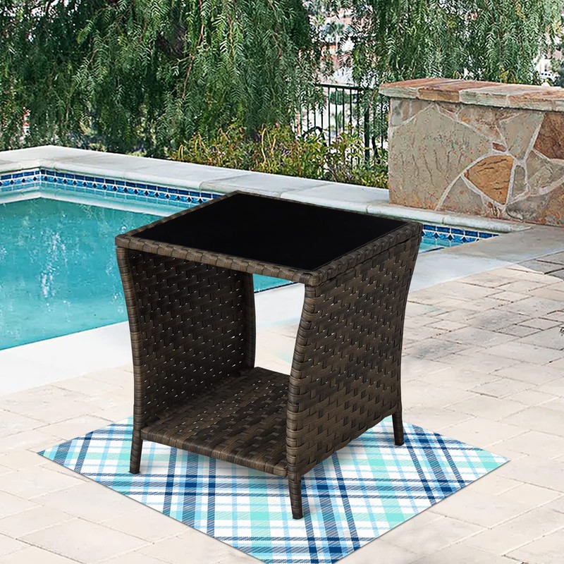 Elesuli Wicker Side Coffee Table Outdoor Side Tables with Storage Bistro Table Patio Furniture Square End Tables Garden Table Brown