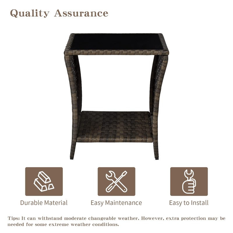 - 【Sturdy & Durable】Wicker end table anti-rust. Constructed from the strong powder-coated frame, sturdy yet lightweight. The synthetic PE rattan is made to be fade-resistant, weather-resistant, waterproof material. Easy to clean and maintain.