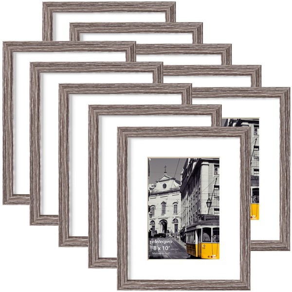 eletecpro 8x10 Picture Frames Set of 10, Gallery Wall Frame Display 5x7 Photo with Mat or 8x10 without Mat, Picture Frame Collage Wall Decor for Wall Mounting, Weathered Grey