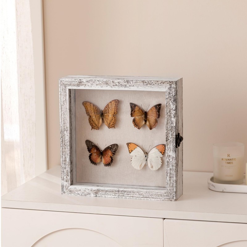 eletecpro 8x8 Shadow Box with Glass Cover and Linen Back, 2.5 Inches Deep Display Case Horizontal & Vertical with Metal Latch for Wedding, Flowers and Gifts, Distressed White