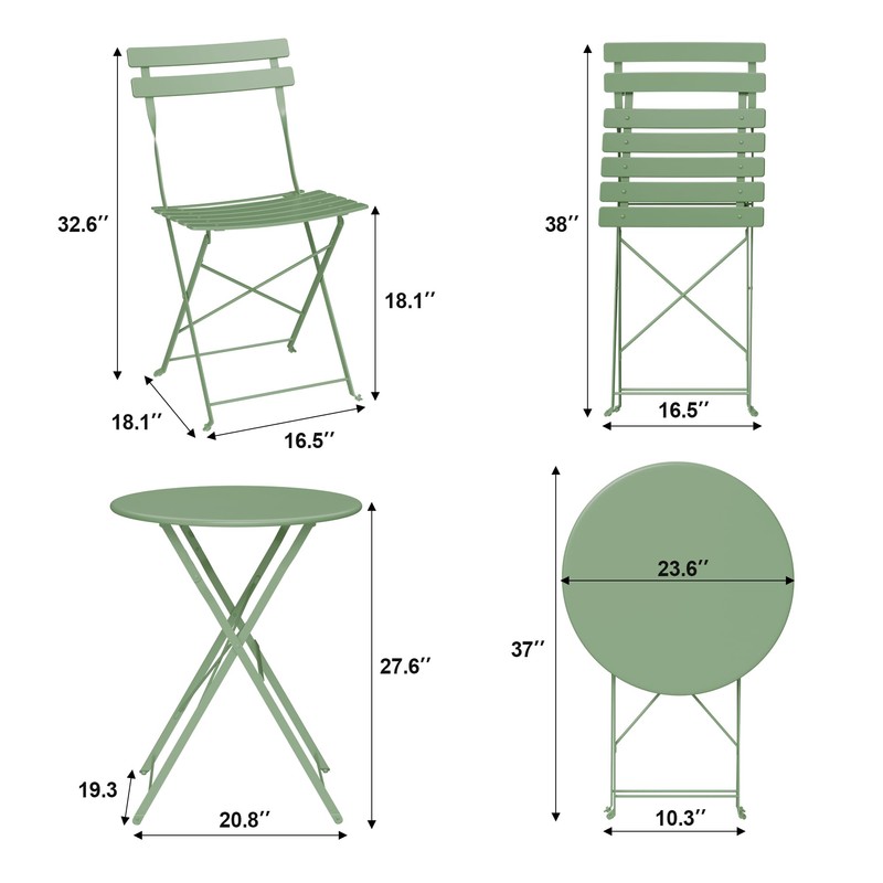 - **Space-Saving Design:** Ideal for small spaces, this folding bistro set can be easily stored away when not in use, making it perfect for apartments, patios, and balconies.