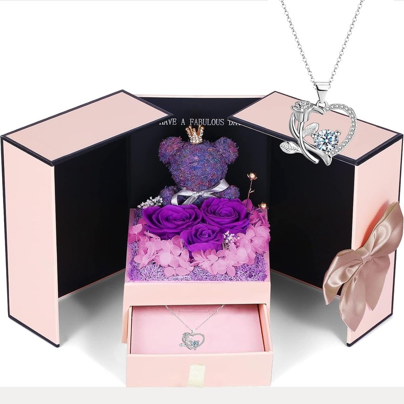- Beautiful gift box: The eternal flowers come in a beautiful gift box that you can give as a gift immediately without having to repack them. The matching necklace is hidden in the drawer, which gives the person who opens the gift a double surprise and an even more romantic feeling.