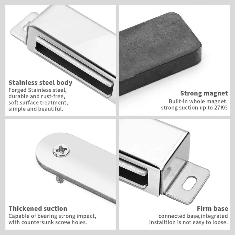 - Small size with strong magnetic force: with a magnetic force of up to 10 kg, this cabinet magnet ensures efficient closing of the door. Each holder is equipped with a strong magnet, which makes it much easier and more enjoyable to use.