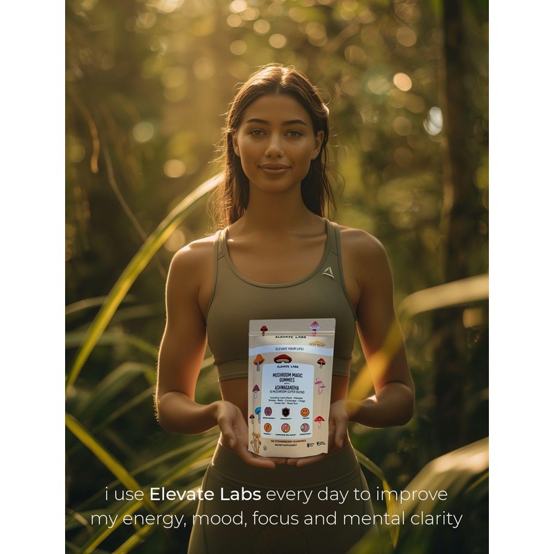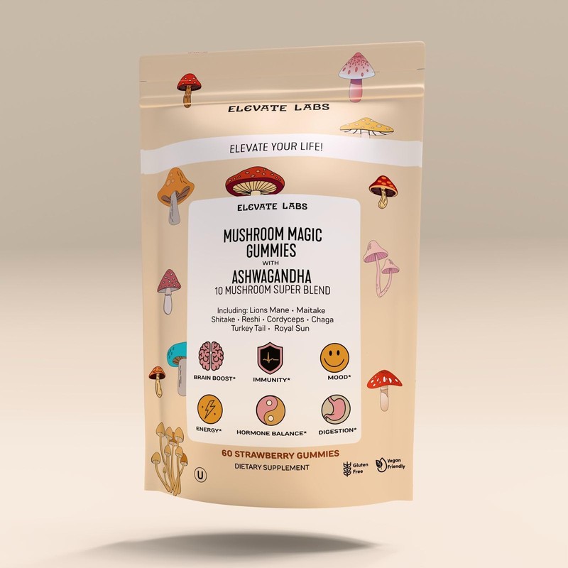 - 10 𝐌𝐮𝐬𝐡𝐫𝐨𝐨𝐦 𝐒𝐮𝐩𝐞𝐫 𝐁𝐥𝐞𝐧𝐝: Unlock your best self with Mushroom Magic Gummies by ELEVATE LABS! Packed with 10 functional mushrooms Including Lion’s Mane, Maitake, Shitake, Reishi, Cordyceps, Chaga, Turkey Tail, Royal Sun plus adaptogenic ashwagandha to reduce stress.