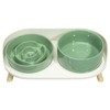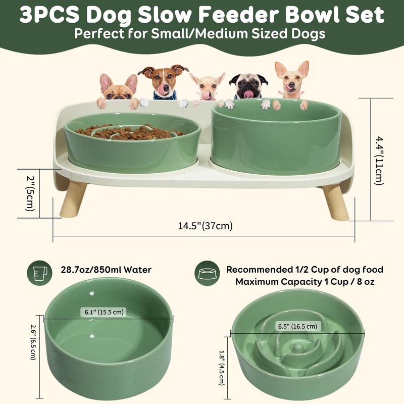 - Selected High Quality Material - The slow dog feeder bowl and the dog drinking bowl are made of premium food grade ceramics, lead free and cadmium free, non-toxic and harmless, strong and anti-bite. And the dog bowl stand is made of BPA-FREE thick plastic, safe, sturdy and stable.