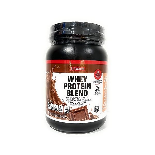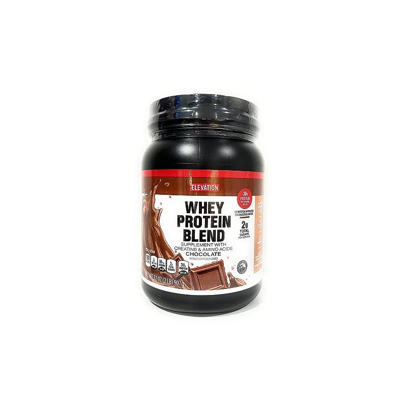 Elevation Whey Chocolate Protein Powder Blend - Supplement with Amino Acids and Creatine is carefully crafted with high-quality ingredients, is packed with 30 grams of protein per serving and is a good source of calcium. Gear up and kick start your journey with Elevation! Easy to mix in water or your choice of milk! Can be use to supplement your favorite cereal or oatmeal by sprinkling on top or supplement your favorite pancake, muffin, or waffle mix for extra protein boost!