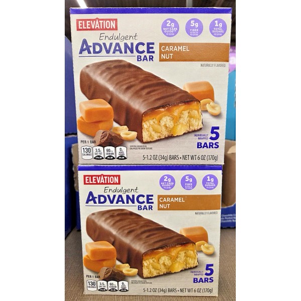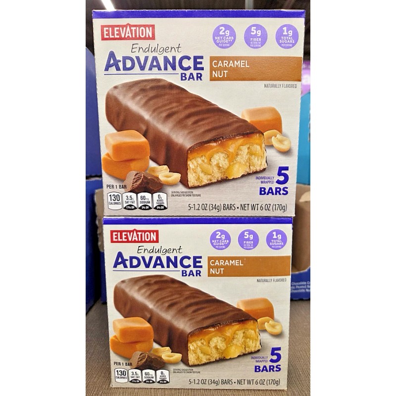 Elevation Endulgent Advance Bar Caramel Nut 6oz 170g (2 Boxes)