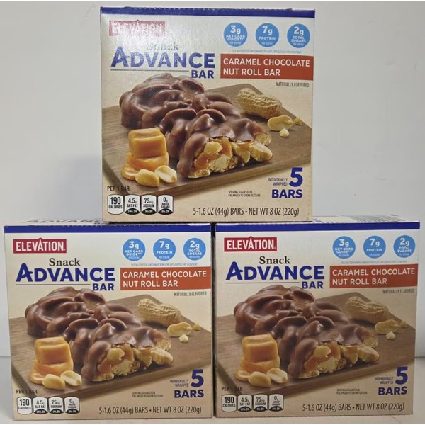 Elevation Snack Advance Bar Caramel Chocolate Nut Roll Bar 8oz 220g (3 Boxes)