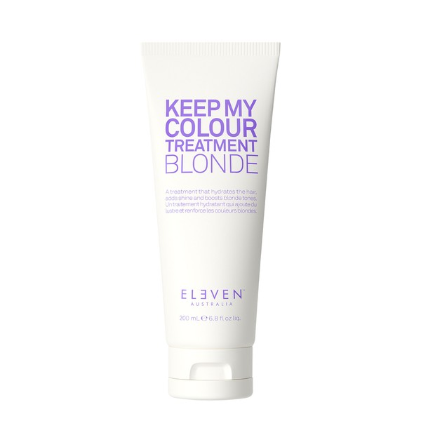 ELEVEN Australia Keep My Colour Blonde Treatment 200ml is a rinse-out deep conditioning treatment that adds shine and tones hair to reduce brassy yellow tones in bleached and lightened hair. This hydrating and toning treatment is perfect for blonde and grey hair, neutralizing brassy tones and adding shine while being anti-fade and colour-safe. Its recyclable packaging makes it an eco-friendly choice, and it is also cruelty-free and vegan. What are the benefits and features of ELEVEN Australia Keep My Colour Blonde Treatment 200ml? Hydrating and toning rinse-out treatment. Neutralizes brassy tones and adds shine. Suitable for blonde and grey hair. Anti-fade and colour-safe. Recyclable packaging. Cruelty-free and vegan. Who is ELEVEN Australia Keep My Colour Blonde Treatment 200ml for? This treatment is perfect for those with bleached or lightened hair who want to reduce brassy yellow tones and add shine while keeping their hair colour safe.