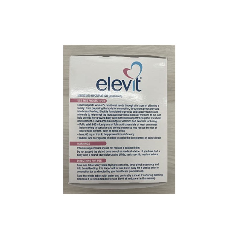 - Elevit with Iodine 100 tablets-has been specially formulated to help meet the increased nutritional needs of women who are trying to conceive, pregnant and breastfeeding.