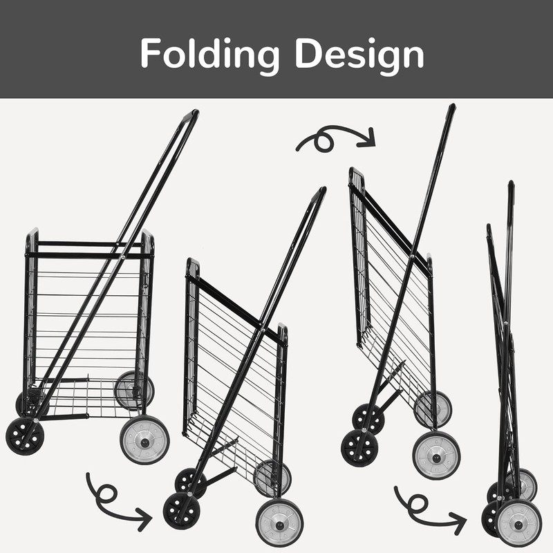 Elevon Foldable Shopping Cart with Wheels, Heavy Duty Collapsible Utility Cart for Groceries, Laundry & Travel