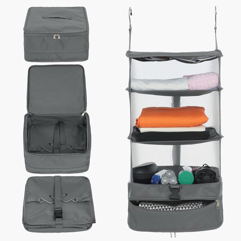 ELEZAY Hanging Packing Cubes Portable Travel Closet Collapsible Compression Clothes Organizer with Built in Shelves for Carry-on Luggage Suitcase Wardrobe Large_11.8 * 11.8 * 24 in, Grey