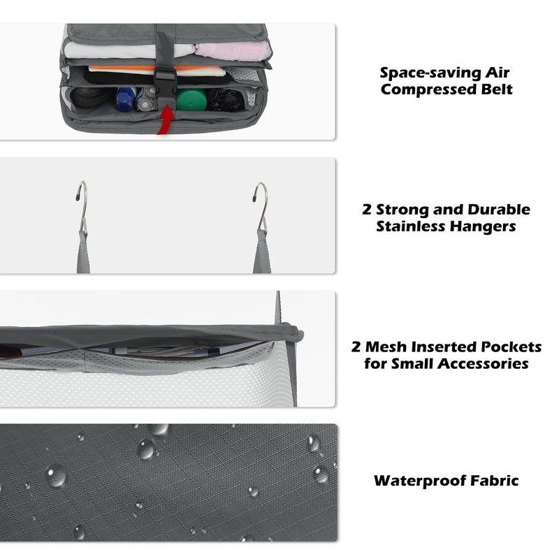 Efficient Storage: The hanging organizer features inner pockets, three shelves, and an insert ziplock cube for charges, travel outfits, toiletries, and miscellaneous items.