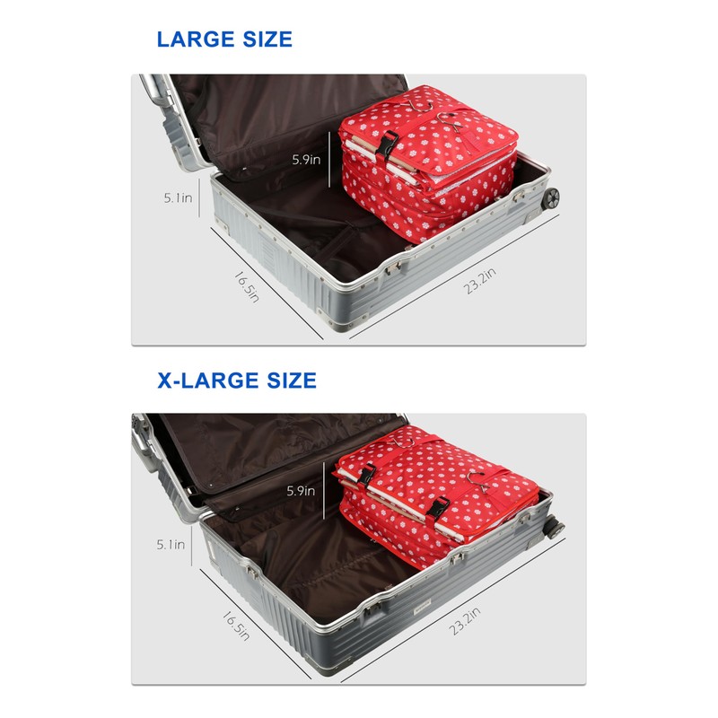 - [Less Mess and Easy Access] - Equipped with two inner pockets for charges/cables/cards and passports, three shelves for separating outfits, and an insert ziplock cube for toiletries/towels/sandals/hair tools or dirty laundry. Different colors for family vacations, catering to various trip durations with Large suitable for a week's clothes and X-Large for longer trips.