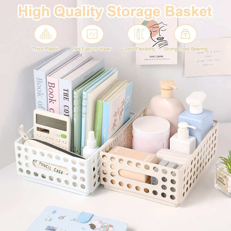 - 【Sturdy and Versatile】:This plastic organizer bin is very solid and strong after assembling, you can store snacks, toys, books, stationery and so on. It is worth mentioning that the stackable design can save more space for you!