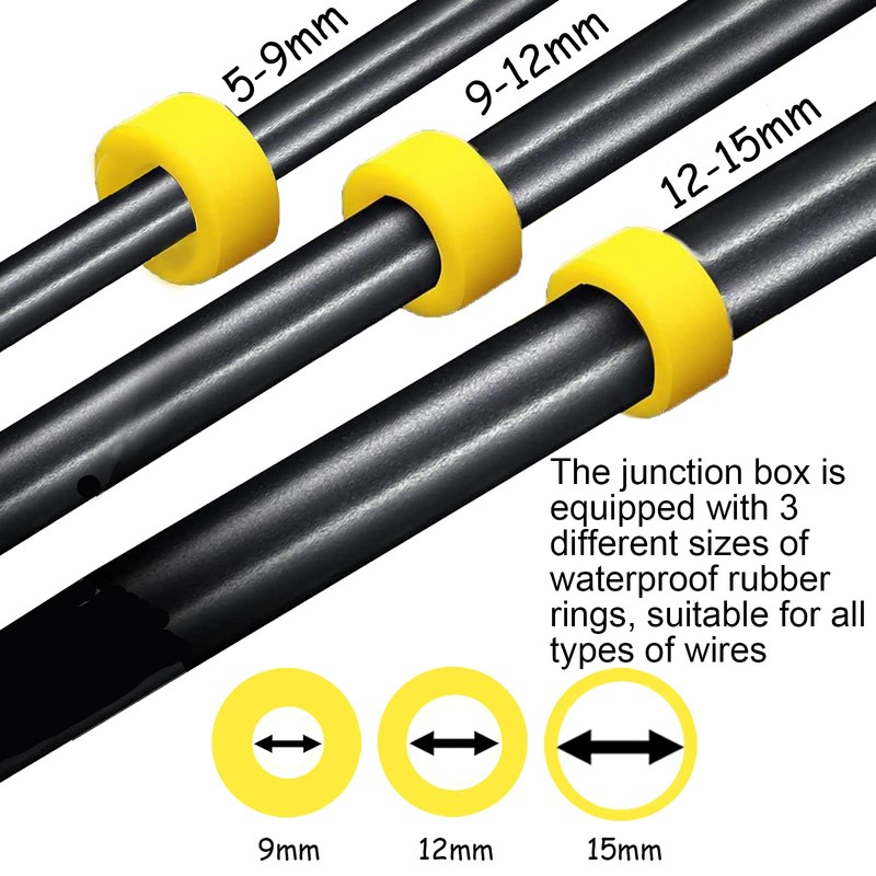 - 【Easy To Install】- Junction box can be easily installed under the ground, gives you full protection of the Cable Line. Equipped with 4 screws and 3-pin connector terminal and 3 different wire diameter waterproof rubber sealing rings, there is no need to worry about the line mismatch, and it is very easy to install.