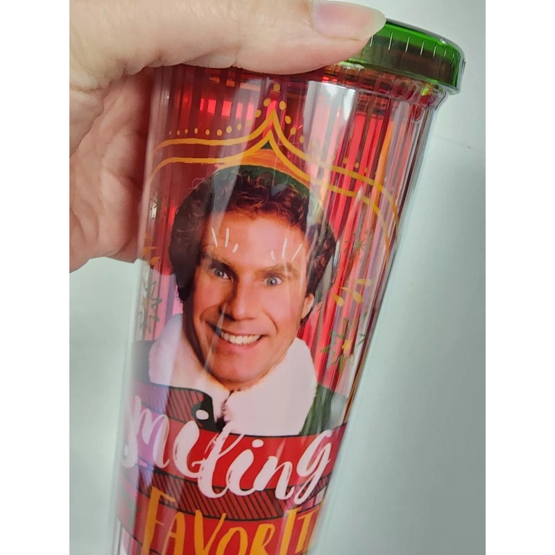 Elf Christmas Travel Cup Smiling My Favorite Red Green Straw Will Ferrell Gift