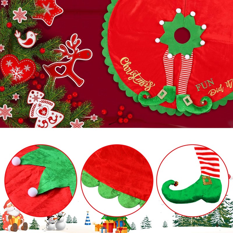 - 5. [Widely Used] The Christmas elf tree skirt is the best Christmas tree decoration, which can hide the Christmas tree stand and create a festive atmosphere. It is very suitable for families, supermarkets, schools, communities and other places.