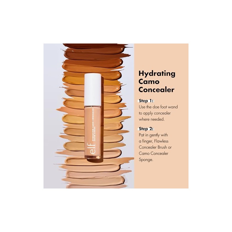 🌟 ⭐ elf, Corrector de camuflaje hidratante, Ligero, Cobertura completa, Larga duración, Oculta, Corrige, Cubre, Hidrata, Destaca, Arena clara, Acabado satinado, 25 tonos, Uso durante todo el día, 0.20 Fl ⭐ 🌟