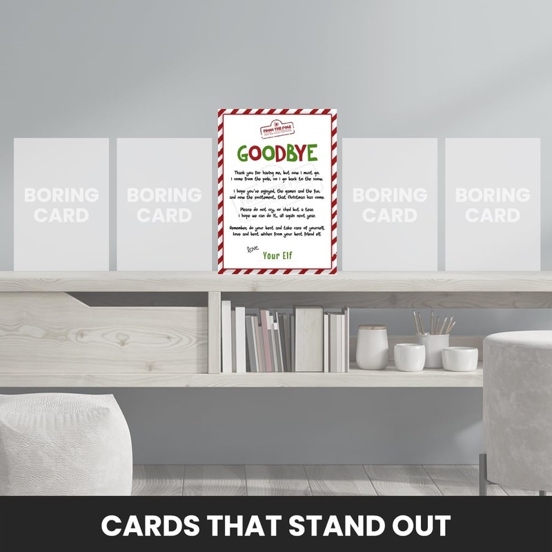 • [Heartwarming Goodbye] : This Elf Goodbye Card brings a heartfelt farewell from your childâ€s favourite elf, making it an emotional and memorable moment.