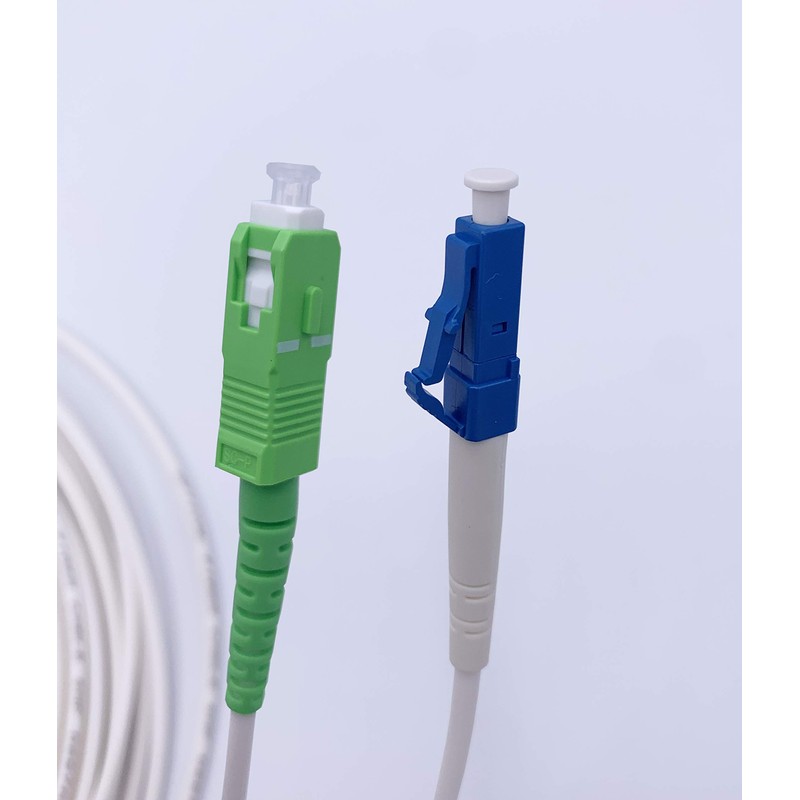 • Single-mode cable, LSZH (Low Smoke Halogen Free). It has an SC/APC connector at one end and an LC/UPC connector at the other.
