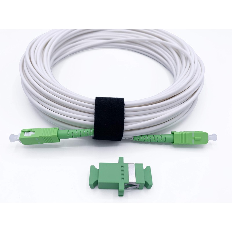 Elfcam® - Fiber Optic Singlemode SC/APC to SC/APC, 7m / 22.97ft, Compatible with FTTH Cable, White, Delivery with Coupler