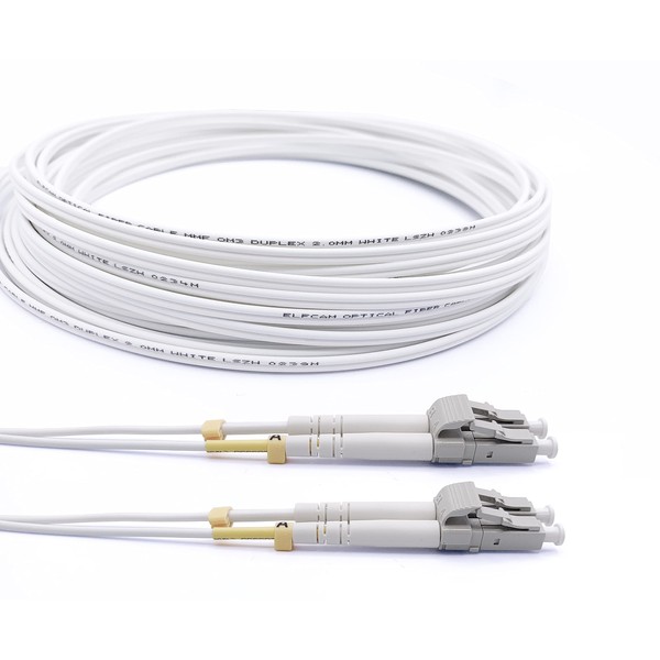 Elfcam® - Fibre Optic Cable (Optic Cable) LC/UPC to LC/UPC OM3 Multimode Duplex 50/125um LSZH, White (30M)