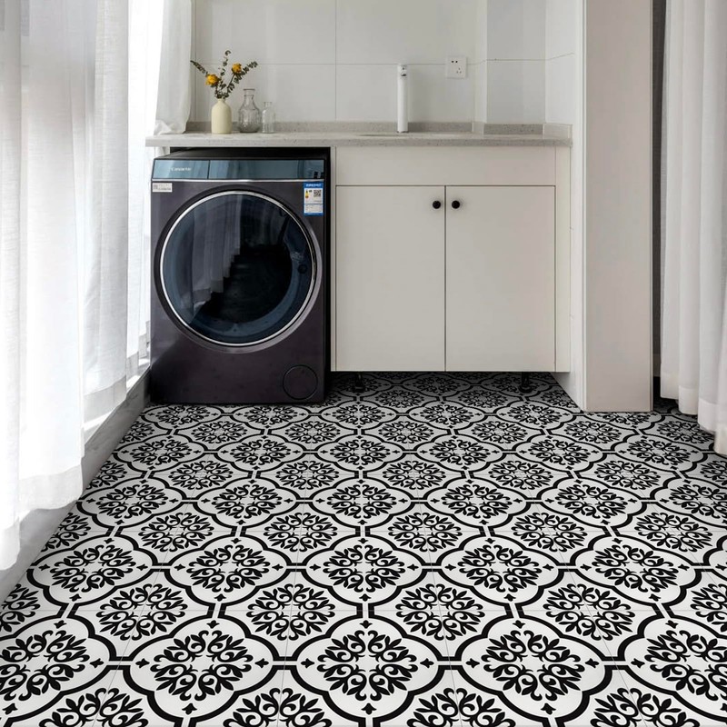 - Versatile Application: Ideal for transforming floors or decorating tables, cabinets, and other flat surfaces. our tiles feature a classic black and white floral pattern, offering a simple yet exquisite design, experience a fresh look with Elffloor