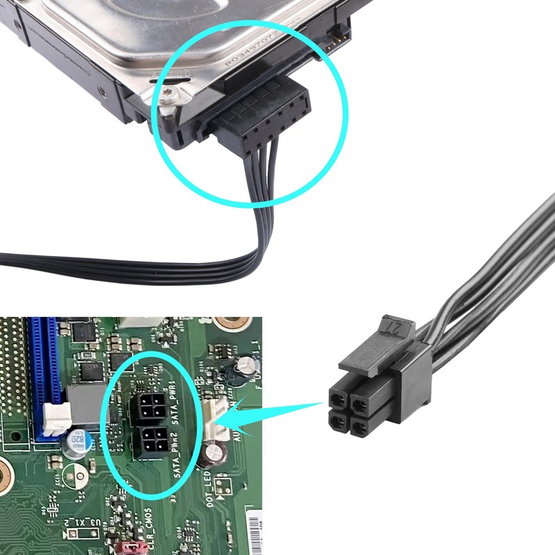 - 1. For Lenovo mini PC motherboard interface conversion and expansion power cable ATX mini 4 Pin to SATA converts the SATA PWR mini 4 Pin connector on the motherboard to a SATA 15 pin connector, a single cable can add a mechanical hard drive or SSD, DVD/CD-ROMs SATA 15PIN power supply to the PC, which effectively solves the problem of insufficient power supply ports, and makes the interior of your computer more neat and orderly. Whether you are upgrading your hard drive to expand storage space or adding DVD/CD-ROMs, this 4-pin to SATA 15-pin power cord extension cable can easily cope with it and meet your various needs.