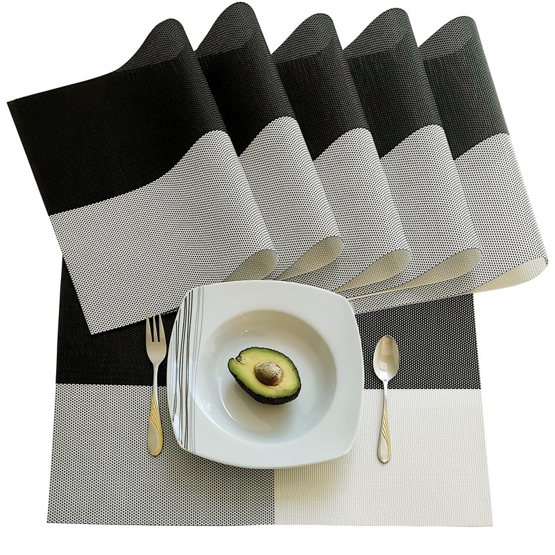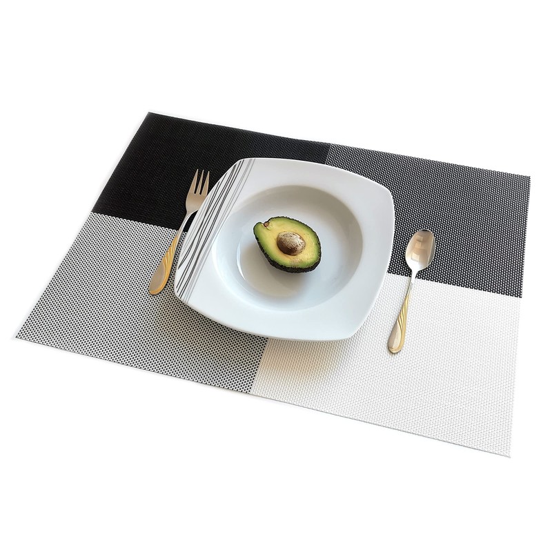 ELFSELF® Set of 6 Place Mats, Washable, Non-Slip and Heat-Resistant Placemats and Coasters, 30 x 45 cm, Place Mats for Dining Table, Kitchen, Restaurant, Decoration and Home (Black and White Gradient)