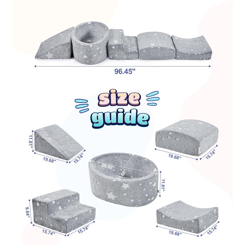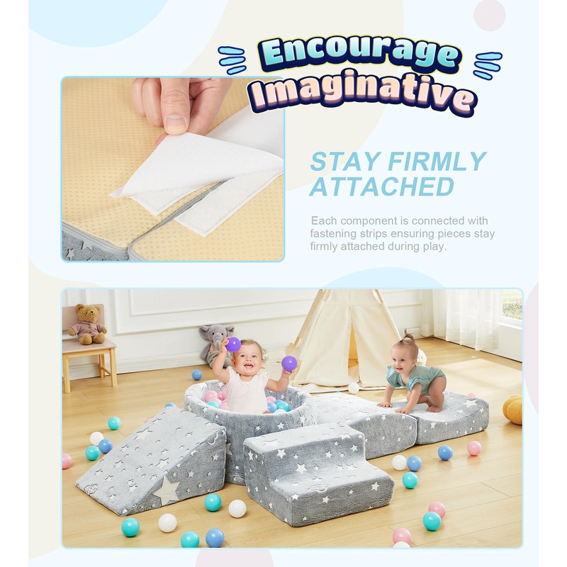 - ❤Complete 5-Piece Set❤ The playset Includes 1 stair climber, 1 ball pit (balls not included), 1 triangle wedge, and 1 versatile cube that splits into two for creative play.It suits for kids or toddlers aged 1-3 years old to safely climb with different levels of difficulty