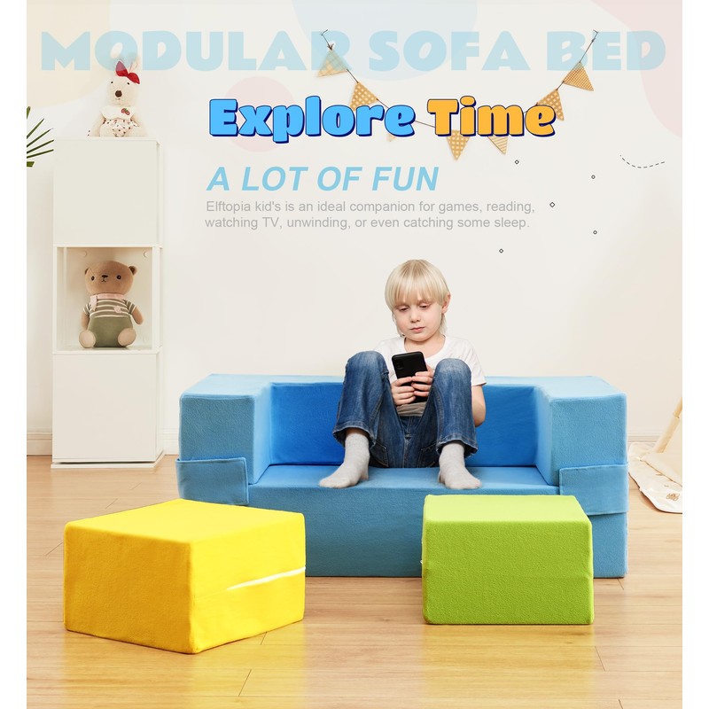 Elftopia Modular Kids Sofa,Toddler Couch Foam Armchair for Kids,Children Convertible Plush Sofa Play Set,Fold Out SofaBed(Dynami Color)