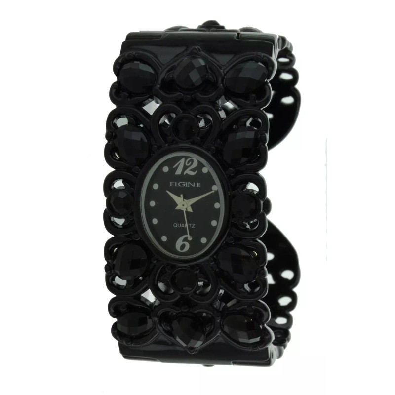 Elgin Ladies ELGIN bracelet watch black tone case and band with stone ELL1022B