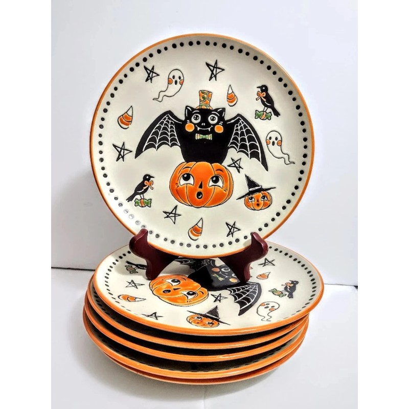ELI+ANA One Plate HALLOWEEN BOO Pumpkin Cat Bats Embossed Dinner Plate 10.5 "