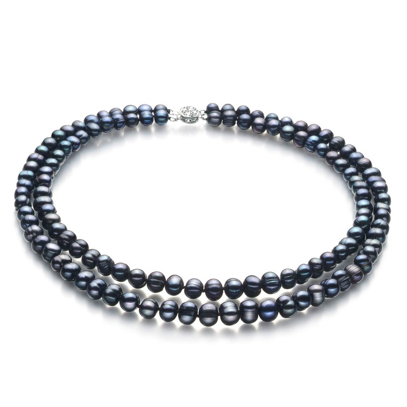 Eliana Black 6-7mm Double Strand A Quality Freshwater 925 Sterling Silver Cultured Pearl Necklace, Pearl