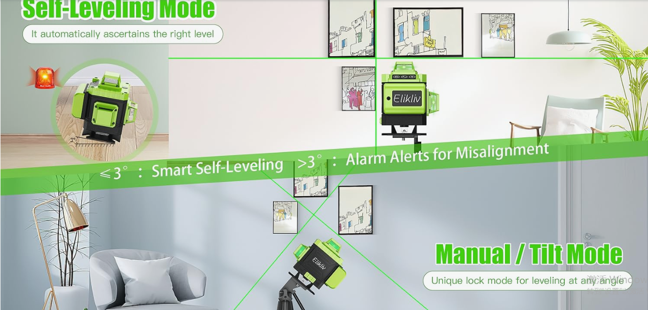 - ✅16 LINES 4 x 360° Beam Orientation Options✅ One of the most crucial features of any fabulous-quality laser level is the beam orientation option.Elikliv 4D 16 Line Green Laser Level models with up to four orientation planes: two vertical dual-beam lasers and two dual-beam horizontal,it manages to cover a whole four-dimensional space without any hindrance.To top it all, it gives 360-degree support for both the planes, which is of tremendous help while measuring.
