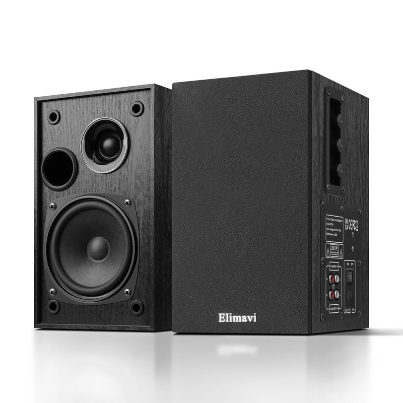 Elimavi Powered Bookshelf Speakers 35W RMS,Record Player Speakers with 4'' Woofer and 1'' Tweeters with Wall Mounted for TV and PC,Turntable Speaker with RCA Input,Black