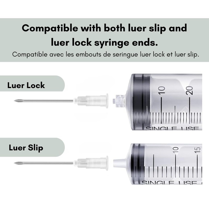 - DESIGN: Adaptable to both luer slip and luer lock syringe end type. Each needle is individually packed in a sealed bag for sterile collection.