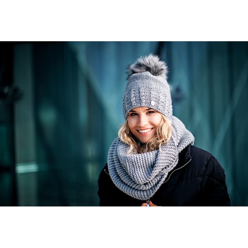 EliMeli® 14503 women's winter hat, warm knitted hat with bobble Slouch, knitted beanie for winter bobble hat, Made in EU, choice of colours., grey