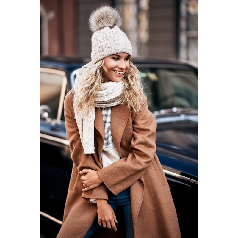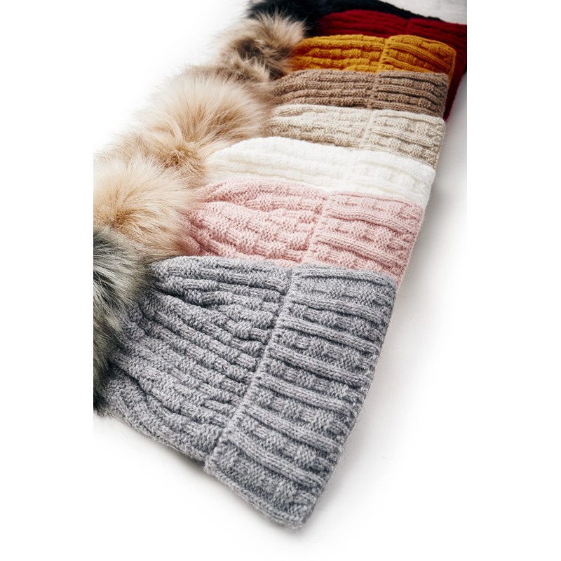 - Design: A beanie hat with a beautiful, decorative structure. The universal style hat is an excellent addition to various styles, both everyday and sporty. The pompom is made of highest quality faux fur and looks like real fur. The logo is removable.