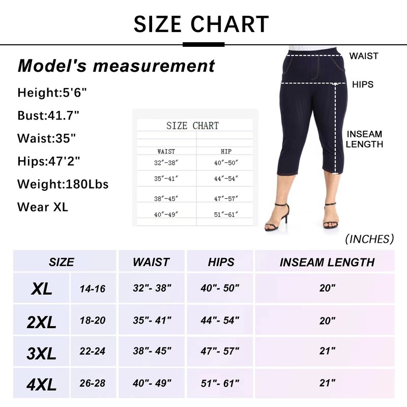 - EASY MATCHING: These plus size capri jean look leggings will goes well with T Shirt,Boyfriend Sweater,Sweartshirt and Blazer Etc, Each style you can try, Versatile leggings for you in most of the years, Suitable for casual daily wear。