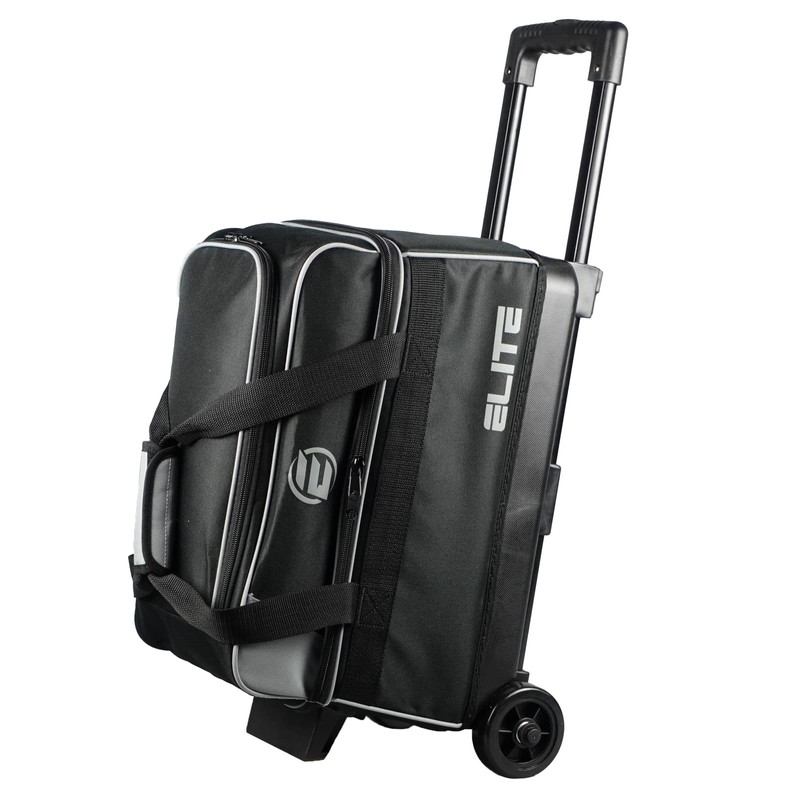 - Organized Storage are what makes the ELITE Basic double roller your go to bag. A special feature separate top storage comparment that holds up to a pair of US Men's Size 15 Bowling shoes. Below, the sturdy base safely and securely holds 2 bowling balls up to 16 lbs each ball.
