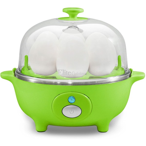 Elite Cuisine Easy Electric 7 Egg Capacity Soft, Medium, Hard-Boiled Cooker Measuring Cup Included, Green