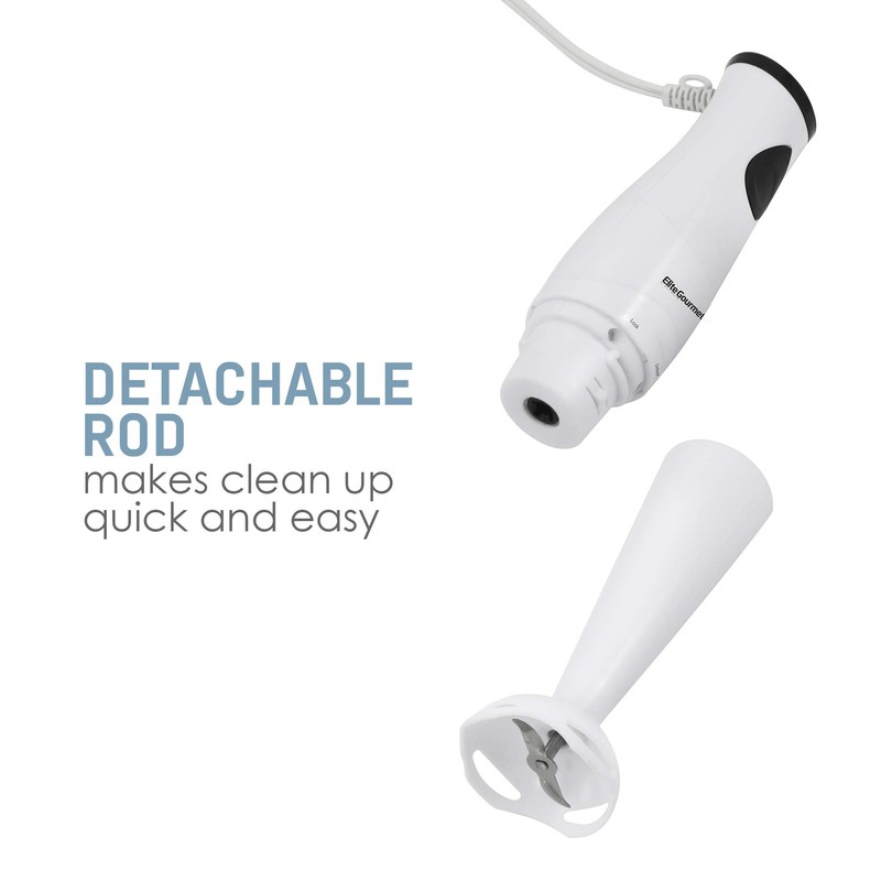 Elite Gourmet Elite Gourmet EHB2400W Electric Immersion Hand Blender, Mixer, Chopper, 1-Touch Control Multi Purpose Electric Immersion Stick, Mixer, Chopper, 150 Watts, For Soups, Sauces, Baby Food, White