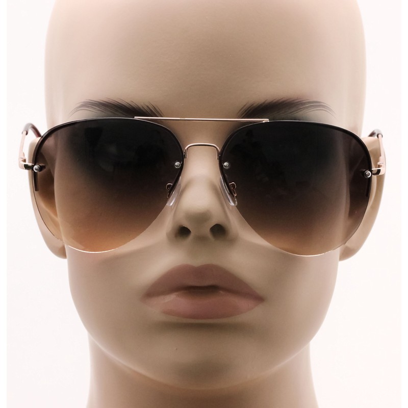 Elite Gradient Oceanic Lens Oversized Rimless Metal Frame Unisex Aviator Sunglasses (Gold Frame/Smoke Brown Lens, 2.5)